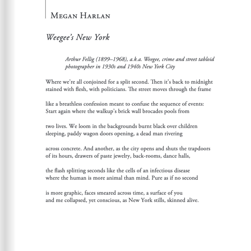 My poem, “Weegee’s New York,” appears in the Summer 2025 issue of Meridian, the literary journal published by the University of Virginia. Read the issue online here.